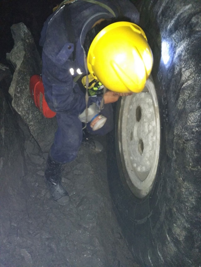 泰凯英服务万里行-泰凯英工程师深入山东某大型地下金矿进行轮胎服务