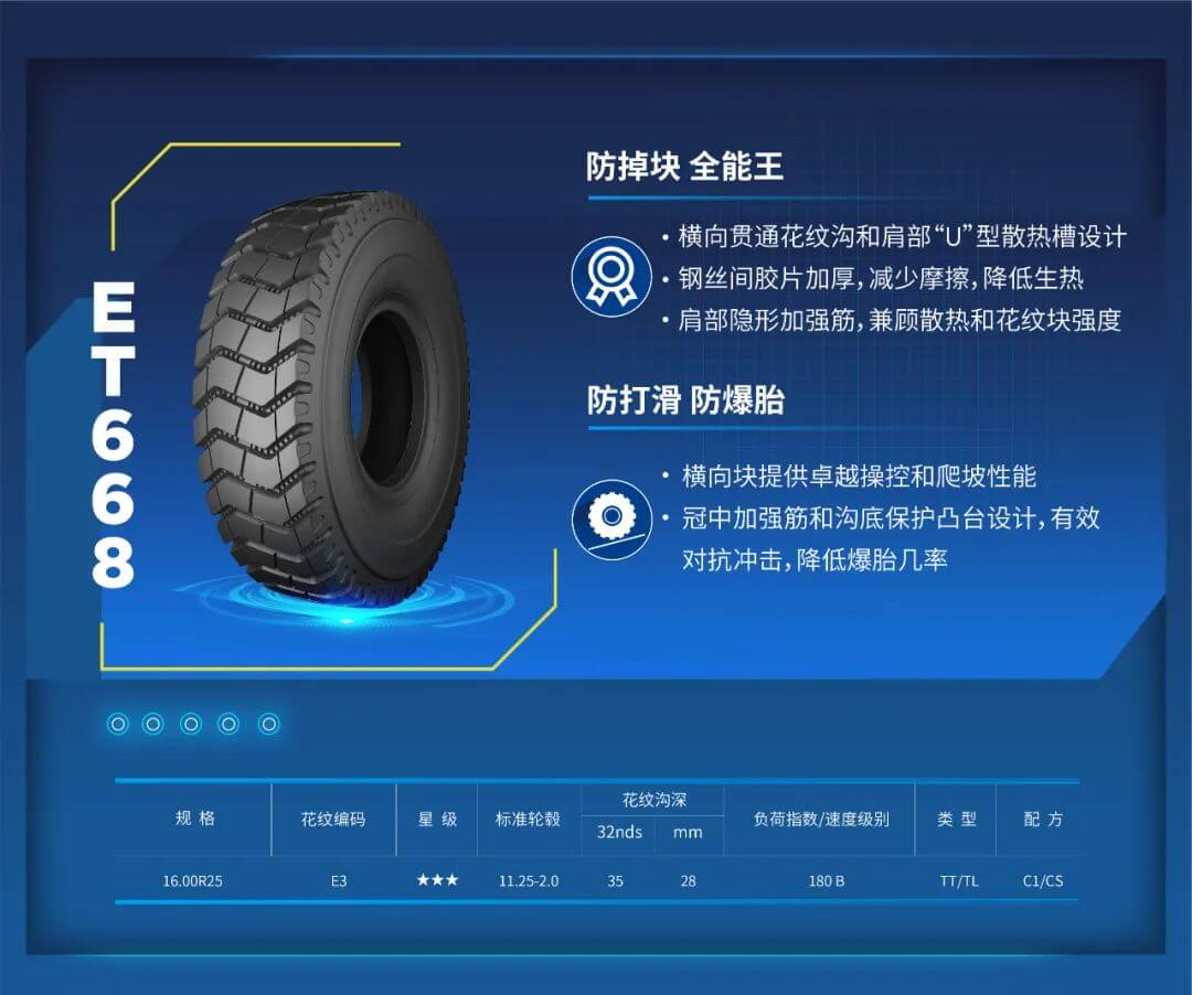 因此,该矿负责人对ET668的使用表现十分满意,并在为鄂尔多斯新矿点采购30辆蓬翔宽体车时,要求其全部配套泰凯英ET668轮胎。